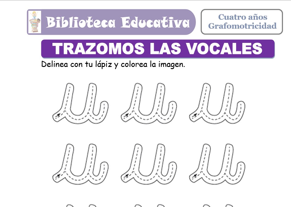 Distinguidos maestros y queridos padres de familia aquí podrán obtener fichas de Trazamos las vocales para Niños de nivel inicial o alumnos que tengan 04 años, este material ha sido preparado con mucho cuidado, para el curso de Grafomotricidad.